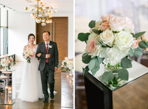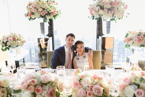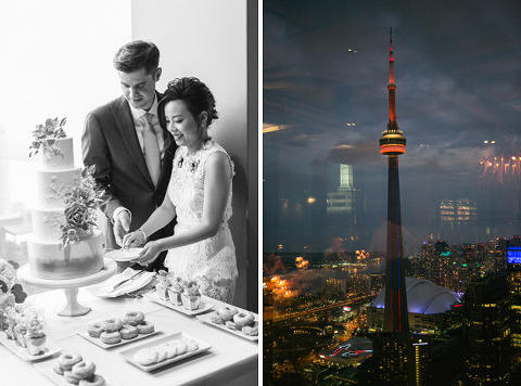 Ye & Sean met 10 years ago and have been together ever since, they met in High School and are now living and working in Toronto. The are such a cute couple and I have to say Ye has the BEST shoes and clothes and jewellery…she is a Fashionista for sure! The couple decided to have their Wedding in Toronto and get ready at the Fairmont Royal York and then have their Ceremony and Reception at the renowned Canoe Restaurant on the 54th Floor of the TD Bank Tower. Rachel Clingen and her Team designed some stunning floral arrangements and I was in LOVE with the Bride’s Bouquet…so many pretty roses! The food was amazing as usual and the very professional and always organized Rebecca Chan was their wonderful Wedding Planner and kept everything under control. Their guests danced the night away to the entertaining tunes of the very talented Brent Miller. With a view like that Ye & Sean’s Wedding day Sunset was on full display for everyone to enjoy as well as the gorgeous Toronto skyline at night. Congratulations Lovebirds and I wish you both a Lifetime of love & happiness! xoxo Corina