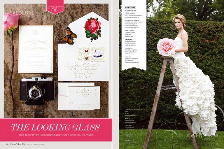 This was for the magazine’s Art Issue, it was photographed at the picturesque Estates of Sunnybrook and the artist we were inspired by was the whimsical and romantic elements of famed fashion photographer Tim Walker.