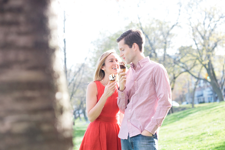 Every May the gorgeous Cherry Blossoms bloom for a short but sweet time . They only last about 1 week before all of the fragrant petals float to the ground. When it was time to decide on the location for Laura & Steven’s Engagement Session, they were quick to agree with me that somewhere with lots of fabulous blossoms would be the perfect location….wouldn’t you also agree? Laura & Steven – I’m looking forward to your upcoming wedding this Spring, and thanks again for the deelish ice cream cone! xoxo Corina