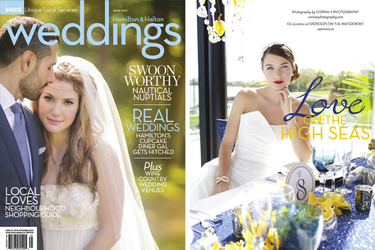 I’m so thrilled with how this gorgeous nautical editorial shoot turned out for Hamilton/Halton Weddings Magazine! Carol Rame was the mastermind behind the look and feel of the shoot at Spencers On The Waterfront and the stunning stationery created by Sarah from Hip Ink really pulled it all together. You might recognize the beautiful bride from this shoot, she is featured in my current ad campaign – Anastasia, it’s always a pleasure to work with you! A BIG thank you to the very creative team who put their talent into this shoot and to the magazine for asking me to shoot this for them! xoxo Corina