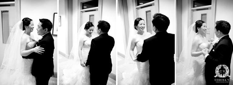 These black and white photos are from their “5 Minute Married Moment” (my own term, you like?) – I also recommend it to all my clients. It’s the first 5 minutes after you come down the aisle, we whisk you away immediately after the Ceremony to a private room or outside where we don’t direct you, we just photograph both of you for about 5 minutes together – looking into your new Husband’s eyes and let you both just be in and feel the moment. Every one of my couples find this is such an intimate and exciting time and a great way to capture some emotional photos…